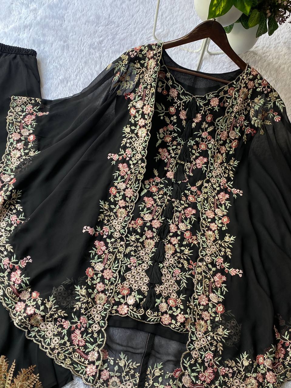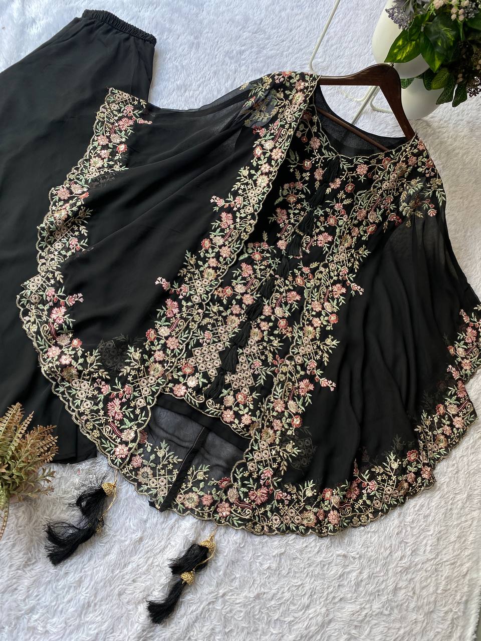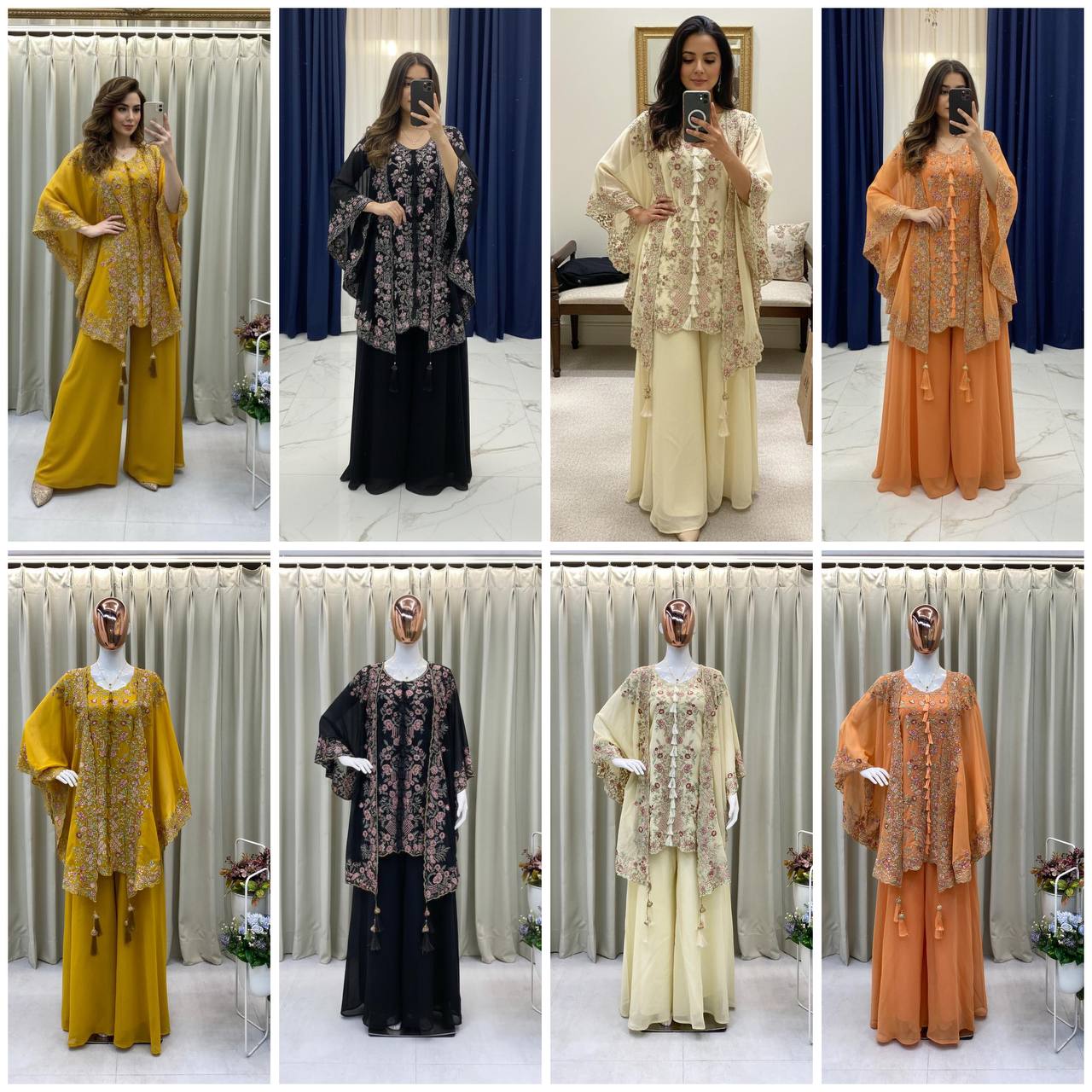 *DESIGNER WEAR KURTA PLAZZO PAIR WITH SHRUGS IN SEQUENCE EMBROIDERY WORK❤️*